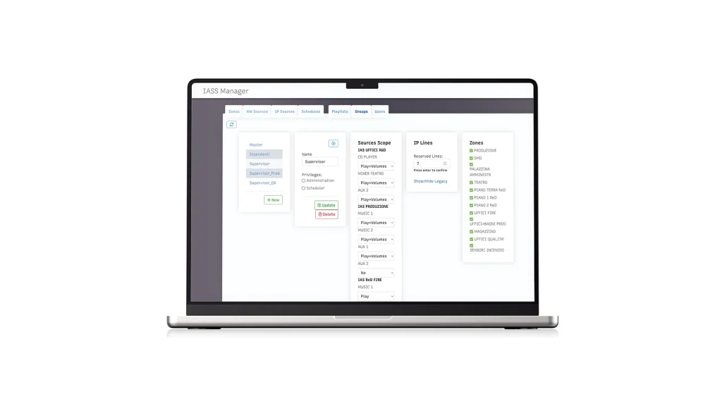 Inim Audio System Server (IASS) è il software professionale pensato per aggiungere funzionalità di audio entertainment ai sistemi di evacuazione vocale basati su centrali Previdia UltraVox. Installato su un PC collegato alla stessa rete TCP-IP delle centrali, IASS mantiene una comunicazione continua che consente la gestione remota e centralizzata di playlist personalizzate, sorgenti audio streaming TCP-IP (come web radio), messaggi vocali programmati e annunci in tempo reale da smartphone. Il sistema è progettato per garantire un’esperienza sonora di alta qualità in ogni zona audio dell’edificio, assicurando al contempo la massima flessibilità operativa.