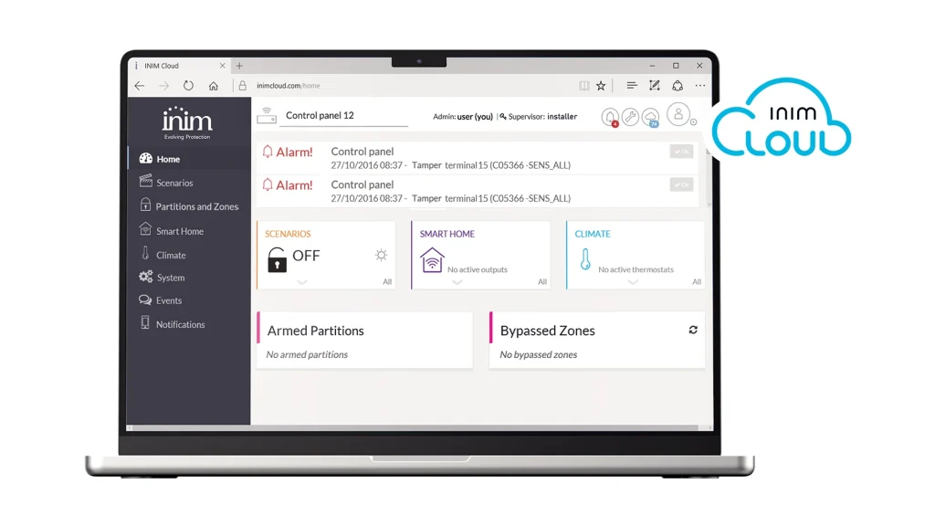 Se possiedi un sistema di sicurezza Inim, l’infrastruttura cloud ti offre il controllo completo dandoti la possibilità di attivare uscite, regolare i termostati e visualizzare gli eventi. Le notifiche push e le e-mail sono personalizzabili secondo le tue esigenze. Lo storage dei dati è su server Europei per un massimo controllo e una massima sicurezza.